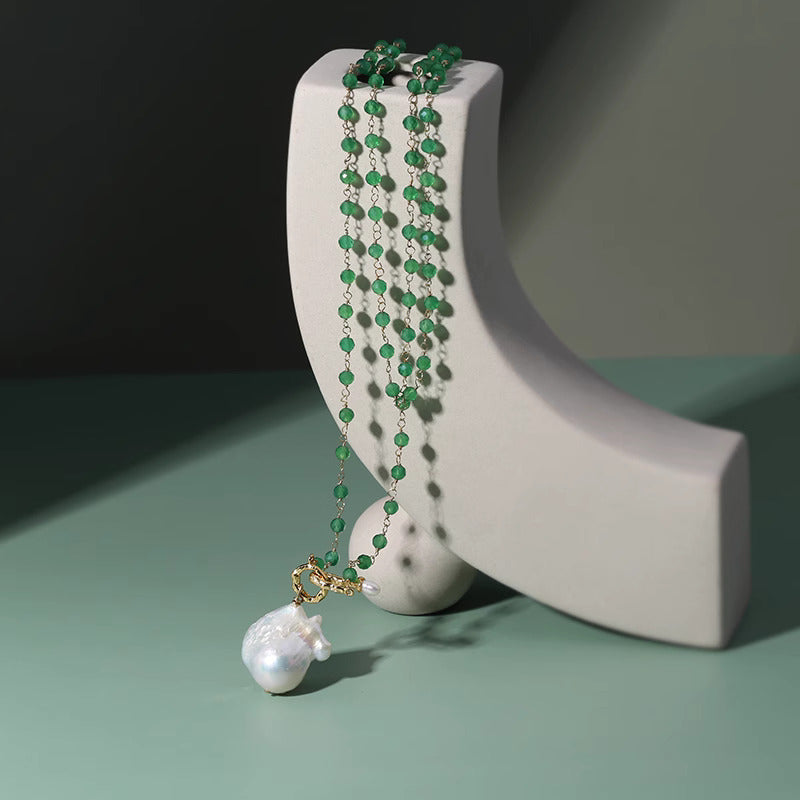 Green Agate with Natural Baroque Pearl
