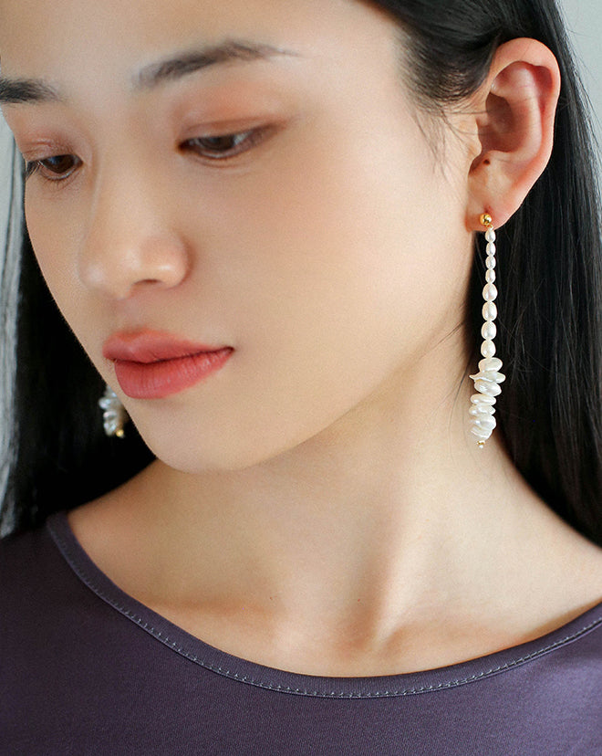 Scattered silver natural pearl earring
